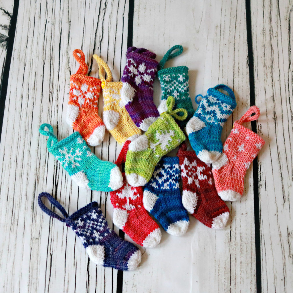 Christmas has a way of sucking us in, wanting to create magical memories for our children. I love advent calendars, so it never felt like a chore to make them, especially using your wonderful yarn rainbow! And they were so easy to make – I could cast on and have a finished, seamed sock all the same evening after the kids went to bed. Not a lot of projects like that.
