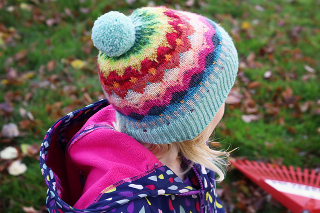 I love the colours Laura chose- that rainbow effect is so darn happy! And the decreases look perfect, topped with that light blue pom pom.