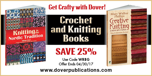 The good folks at Dover Publications have very kindly offered a coupon code for 25% off of ANY book on their site. So if you missed out the last time, now is your chance! There’s loads of knitting titles to choose from here, and you can click around and check out all their other craft books, if you happen to be multi-craftual.  Here’s the coupon code: WRBG