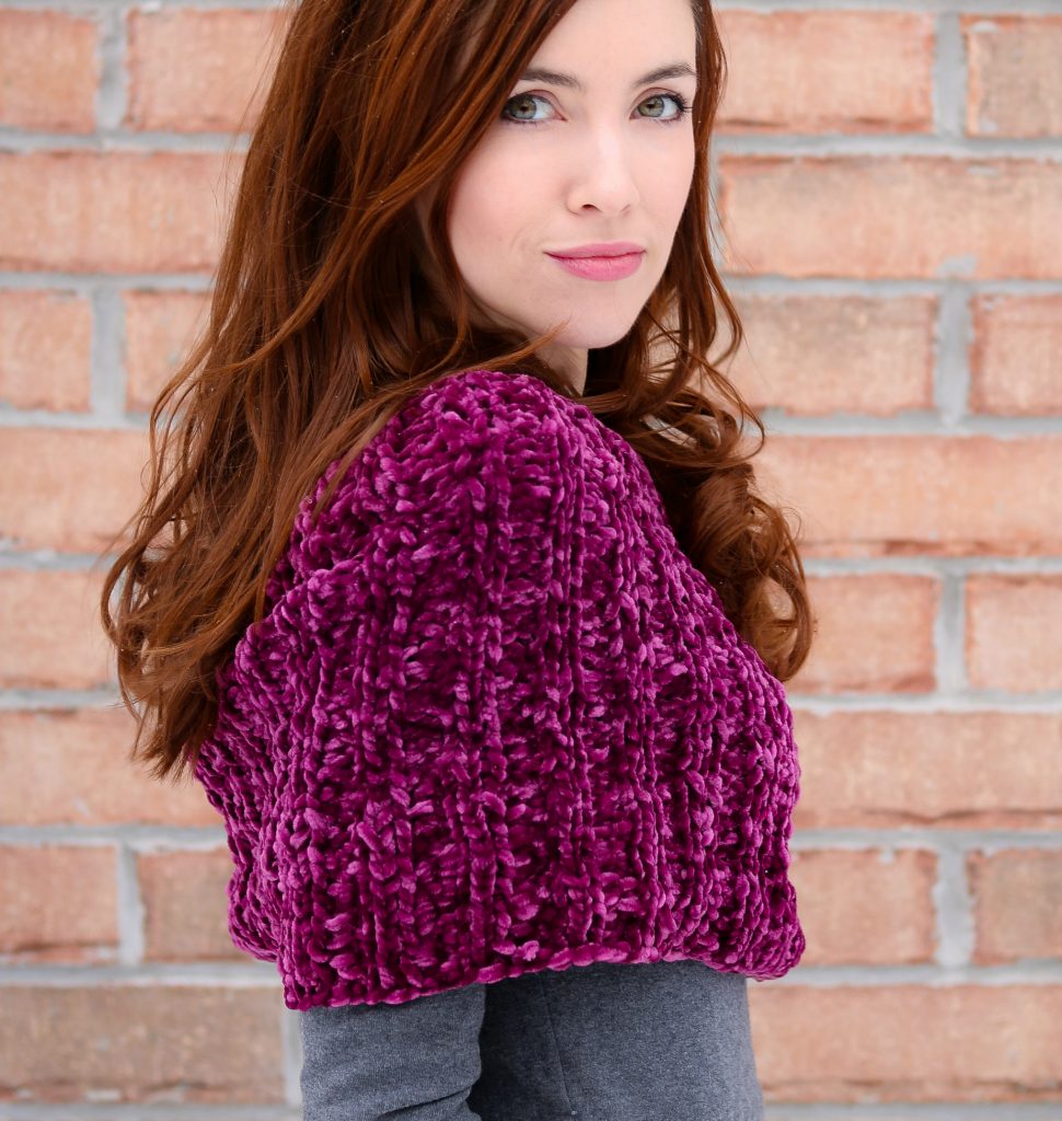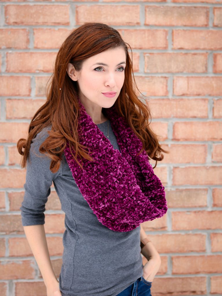 I also really love looking through the #bernatvelvet hashtag on Instagram, it’s really inspiring for the variety of crochet and knit items that people have made with the yarn in a variety and there are SO MANY ideas for future things I’d love to make – it’s a very inspiring rabbithole! Toys (the velvet teddy bears are particularly pretty), sweaters, shorts, skirts, dresses, accessories- even scrunchies! I love the velvet scrunchies, they look incredible. But I can personally attest to a velvet cowl. It’s easy to be happy in a velvet cowl.