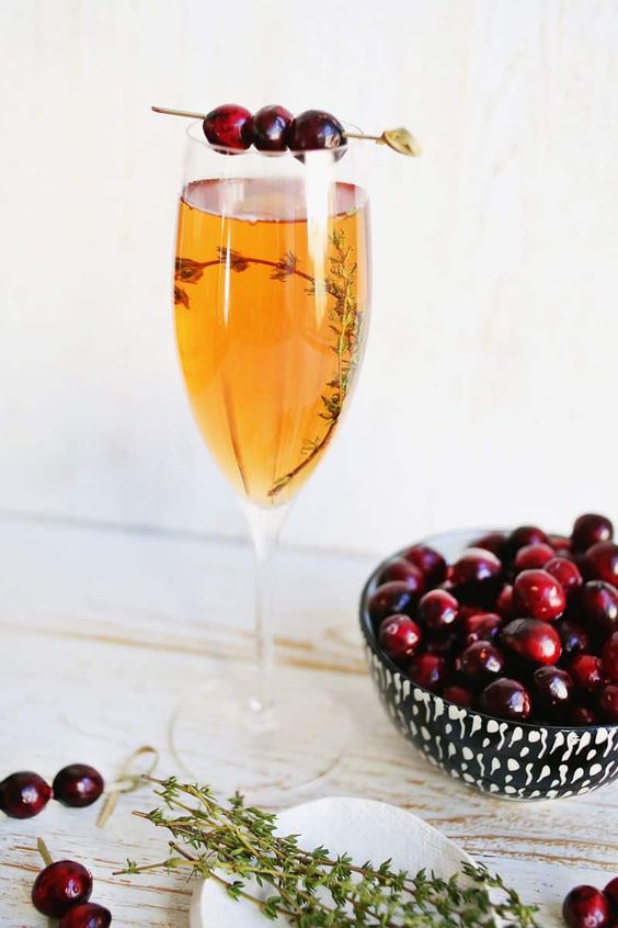 I made these super simple but very pretty cocktails when I had a couple friends over recently, and they felt very special and festive with the cranberries and sprigs of thyme! Highly recommend. It was a snap to put these together, and I would definitely make them again. Find the recipe right here.