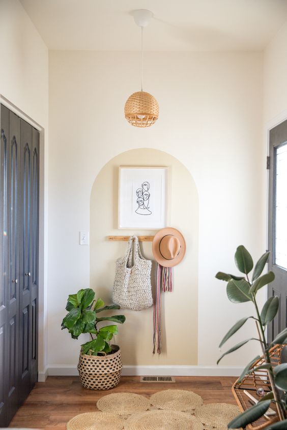 I absolutely love this minimalist and completely elegant entryway idea – the subtle colour difference of a handpainted arch to provide a focal point for an entryway. Just so beautiful, and simple. Pinterst link is here and the full DIY can be found here.