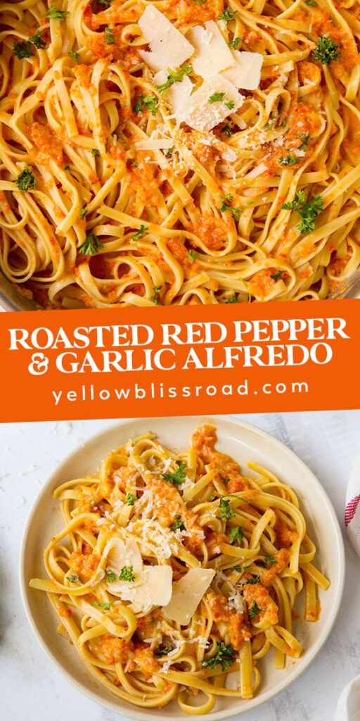 Roasted garlic and red pepper fettucine alfredo is the creamy pasta you are waiting for, and full of vitamin c thanks to all those bell peppers! And you know what I’m like, sharing all these creamy pasta recipes- I love creamy pasta sauce! So good! And a lovely dinner idea. Find the full recipe here.