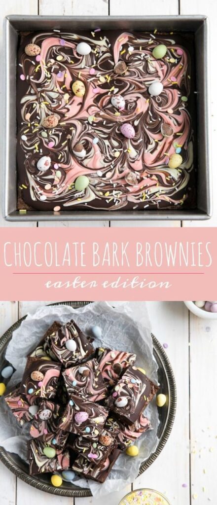 These chocolate bark brownies looks like such a fun Easter dessert, don’t you think? I love the crush mini eggs on top nd the swirl of pastel candy melts, it looks so delicious!! Just want to dive into that whole pan of them. Find the recipe here – and honestly, I bet you could use box brownie mix for the base and still get the same effect, focusing on the recipe for the top of them. Only if you don’t feel like making them from scratch! The recipe is right over here.