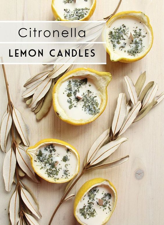 I love this great way to make your own citronella candles out of halved lemons! I also think this would be a fun craft activity to do with friends, and split the supplies, and then everyone goes home with their candles. I bet these smell amazing! DIY can be found here.
