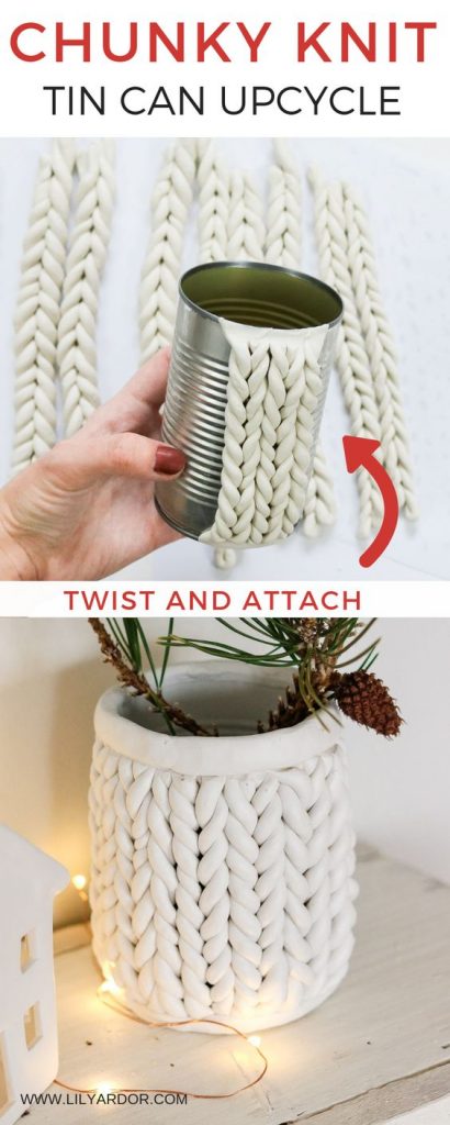 With just a tin can and some polymer clay, you can make this pretty and whimsical knit planter. Or I suppose it could also be a vase? It looks SO easy, I really want to try it! Polymer clay can be expensive in the craft store, but you can find lots of DIYs on making your own version of polymer clay (this looks like a really good one, the reviews are excellent). Pinterest link for the DIY is here, and the full tutorial for making your chunky knit planeter can be found here.