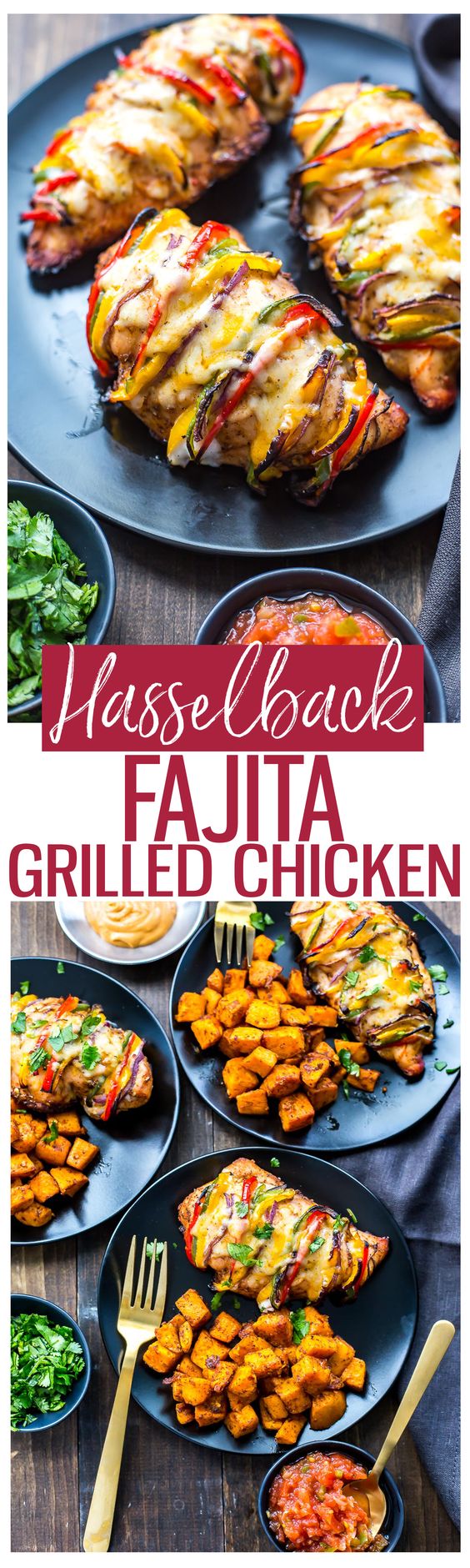 This fajita chicken is done up like hasselback potatoes- careful slits made and the sliced veggies tucked inside, cooked together and smothered in cheese- If you like chicken, this will be a wonderful weeknight dinner, I promise. the salsa and sour cream make this really exceptional! Pinterest link is here, and the full recipe is here.
