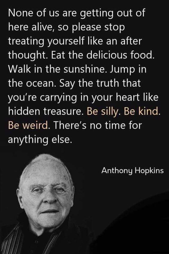 I love this quote from Anthony Hopkins, and I think we could all use the reminder now and then. Pinterest link is here, there are a million of these floating around the internet, but the source of the Pin is here.