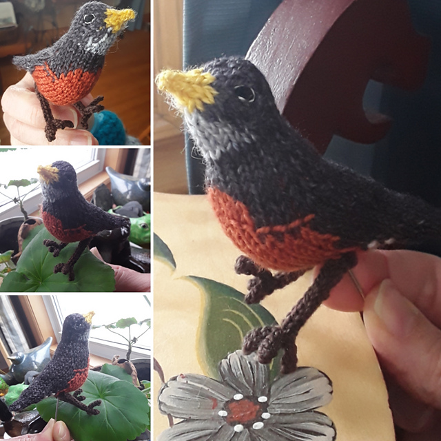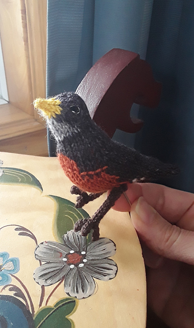 Mods: Lori changed the solid bird shape pattern to customize for alonger, thinner shape, and robin details via intarsia. Details can be found on her project page, here.
