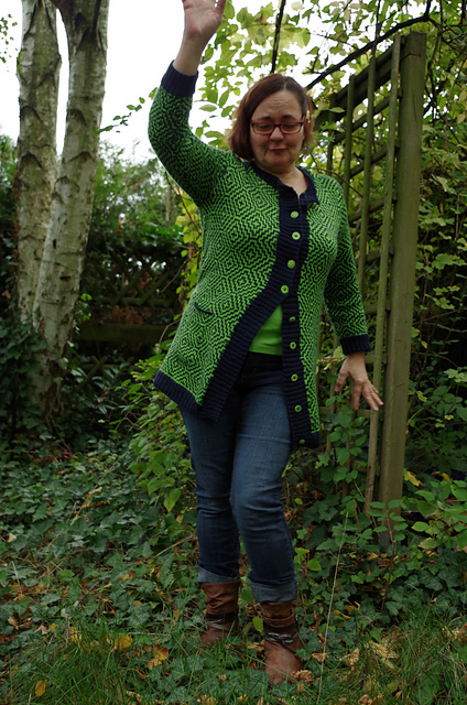 What Makes This Awesome: Sometimes you see a knitting pattern that has a design detail – in this case, the great two colour stitch design of the original design – but you want a different sort of sweater. Marion did a great job of starting with the original, but making it totally the way she wanted by customizing every step of the way. The button band and collar are a great addition, as well as the pocket – you can tell it’s just the right size for a smart phone! It looks fantastic on her, don’t you think?