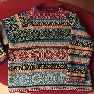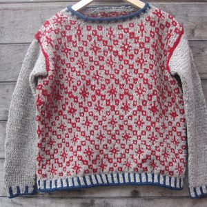 Original Patterns: Wheat and Heritage Knitter Extraordinaire: Alina (Ravelry ID, website) Mods: Combined the two sweater patterns into a new