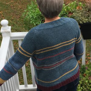 Original Pattern: Ease Knitter Extraordinaire: Michelle (Ravelry profile) Mods: Michelle modified tee Ease pattern to be a Harry Potter inspired