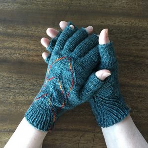 Original Pattern: Endpaper Mitts Knitter Extraordinaire: Joanna (Ravelry Profile) Mods:Â Swapped out the original stranded design for a completely different