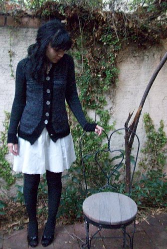 Mods: Anna had been using grey sock yarn held double, but started to run out as she got near the armholes. So she started blending in a darker charcoal yarn for the stripe instead. She also used the charcoal yarn for the sleeves. She changed the button band, by eliminating the edging and adding more short rows, to make the collar stand up a bit more, and be closer to the neck.