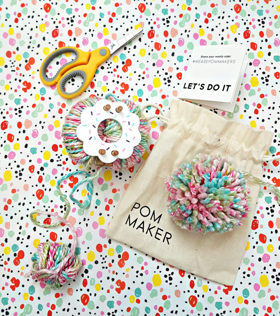 Not only does it look like an adorable doughnut (and comes in different colours), this is the easiest pom pom maker I’ve ever used. Which is great, because Lila is fascinated and now she wants to make pom poms, too. The pom it produces is pretty big, about the size of my hand, with only a tiny bit of trimming to even it out. It would be great as an oversized (but not ridiculous) pom on any adult hat: