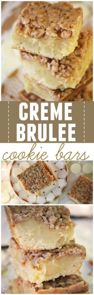 Creme Brulee is one of my all-time favourite desserts, so I was very intrigued by these creme brulee cookie bars. They do have a lot in common with the classic dessert, and are surprisingly easy to make – only 8 ingredients. As a reference, I discarded another cookie recipe I was considering because the cookies had 10 ingredients and then the icing had 6 ingredients. I might have time for that when my kids are older. But I’m not going to worry about it, not when tasty desserts like these creme brulee bars are in existence. Pinterest link is here, and the original recipe post is here.