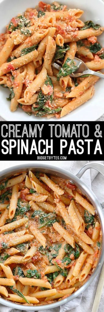 You know how much I love a quick and easy weeknight dinner, and this simple pasta dish is easily pulled together with pantry staples, fresh or frozen spinach, and some cream cheese (which is a total fridge staple for me). Pinterest link is here, and the original recipe can be found here.