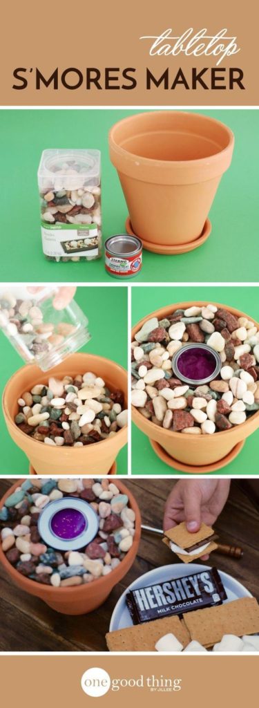I absolutely love the idea of a tabletop s’mores pot, and this great DIY shows you exactly how to make your very own! The only thing I’m wondering is if you could use a natural candle instead of the pot of fuel? Has anyone tried? I’m not too excited about a little pot of flammable whatever on my table, but a candle or two feels more manageable. Pinterest link is here, and the original DIY is here.