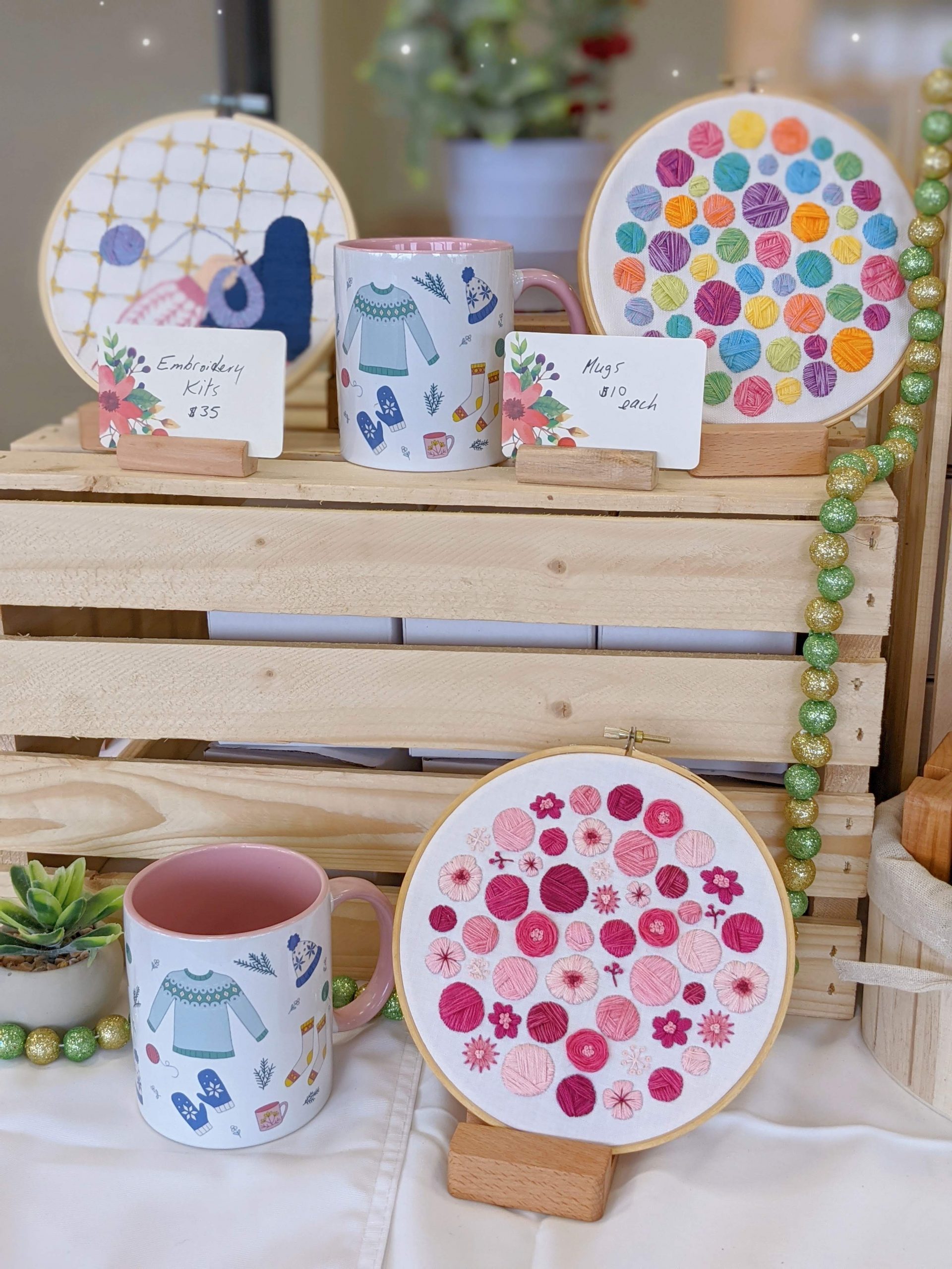 I also was seated next to Earth Love Bath & Body and I felt like I learned so much more about craft shows from her, while we chatted in the slow bits that happened here and there. Not to mention her stuff was amazing, and I definitely left with some goodies! I was surprised that the mugs (see photos) which I got specifically for craft shows- they are $10 each and the shipping is at least $12 for each, so they don’t make sense to mail to anyone- didn’t do that well, and I was shocked. So cute! So affordable! Why weren’t they moving quickly? So I asked Monica of Earth Love Bath & Body what products she had that she loved and thought should do a lot better than they did, and her face lit up and she talked about one of her favourite products, and how every maker has a product that they think should be a huge hit that somehow doesn’t always get the attention it deserves. I have been mulling that over since Saturday, especially when she said that every show was different and often something that sells well at one show won’t sell well at the next, and then pick back up again later on, etc. So I feel like there’s hope for the mugs yet!